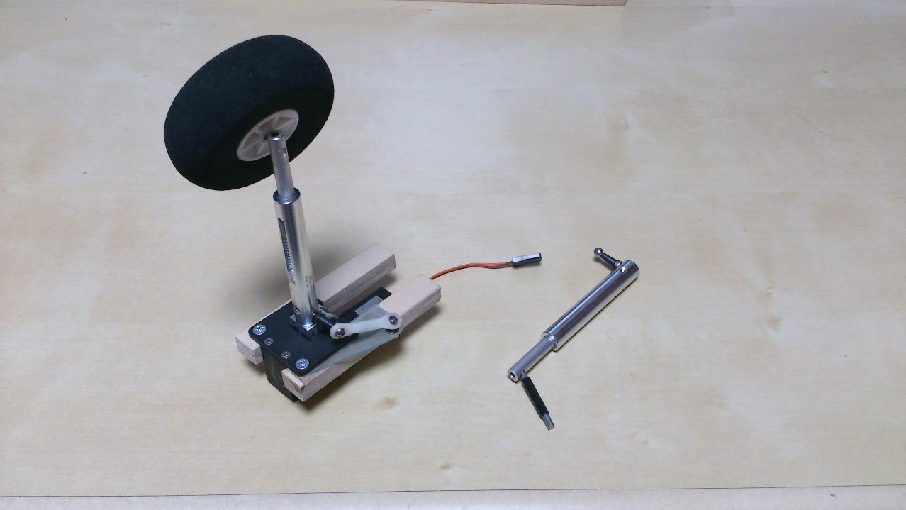 ノーズ・ギヤです。90度ローテーションさせると、支柱がギヤボックスに当たるのでカットしています。