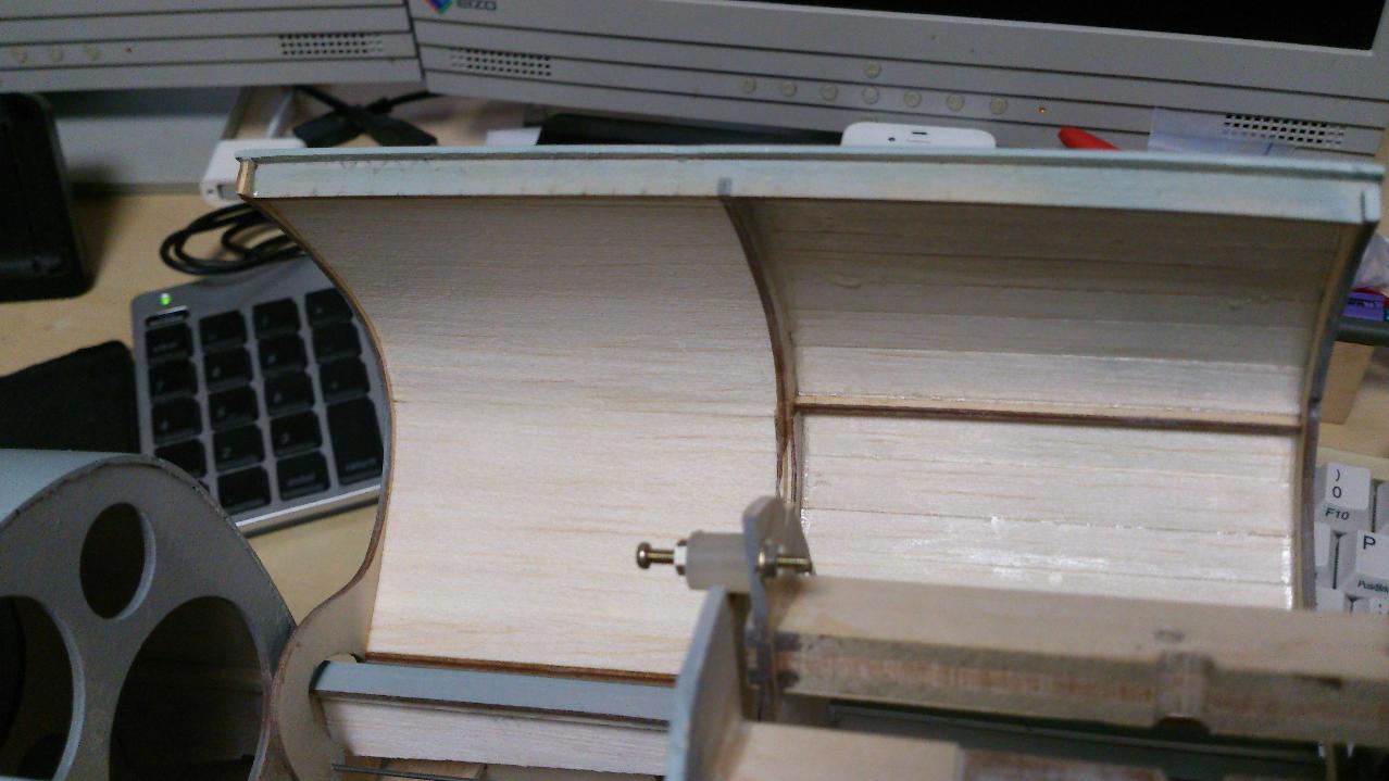 ギヤ・ドアは胴体甲板張りと同じバルサ1.5mm厚となり、どうしてもハッチと胴体とのすきまを設ける必要があります。特に今回は、ノーズドアは小さく4枚あったので1.5mm厚のドアはちょっと無理がありました。このぐらいの小さなドアであれば、3Dプリントで作成するのが良いかなと思っています。