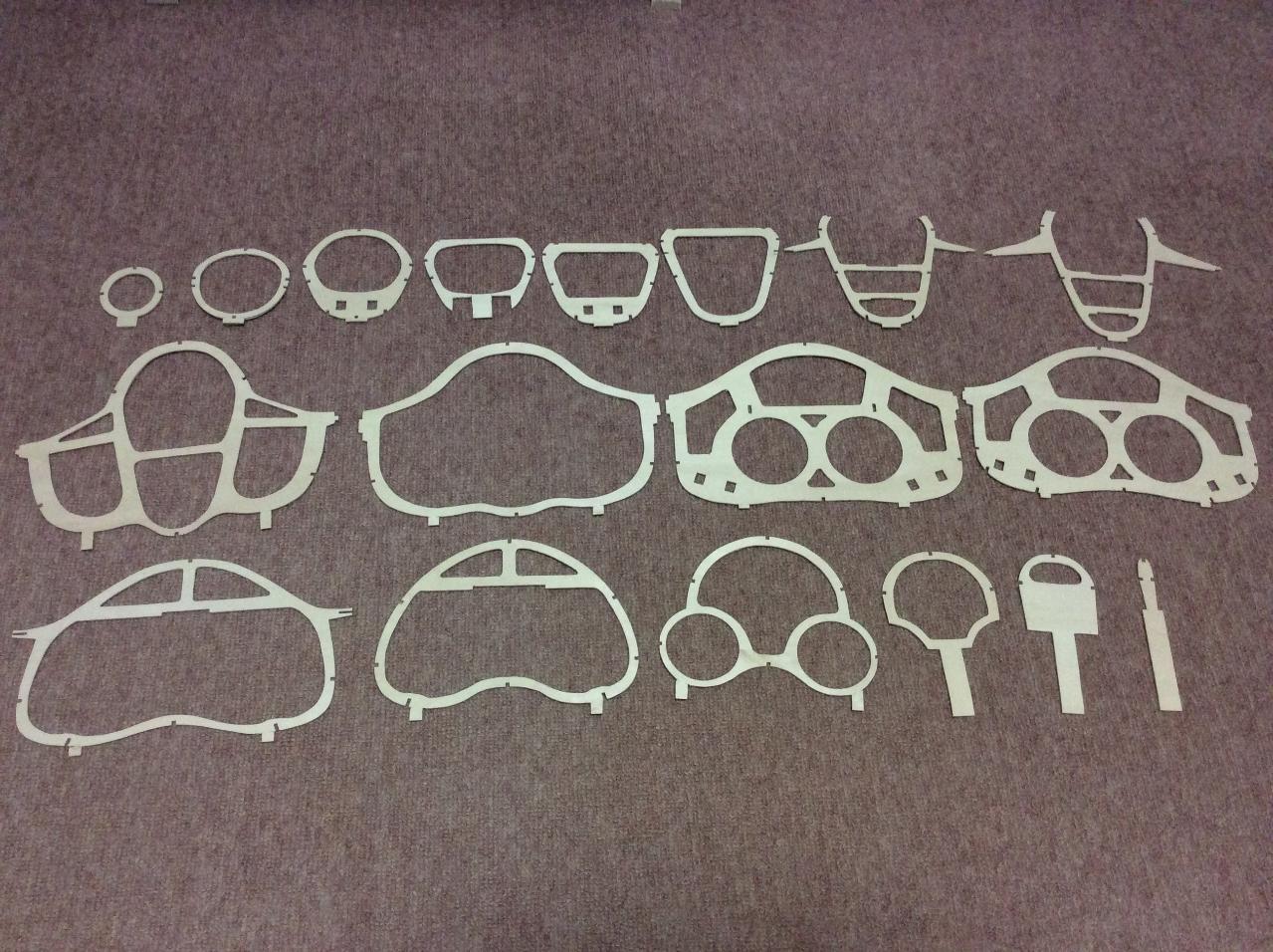 出来上がった胴枠。電動糸ノコで切りました。お金がかかりますが、スマートにレーザーカッターでと行きたいですね。おかげで、だいぶ糸ノコの切り方がうまくなりました。