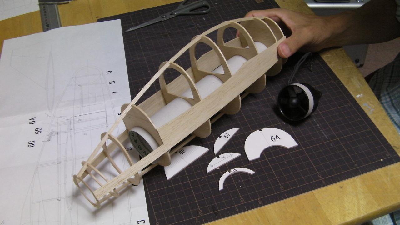 組み立てた時の動画を撮りましたので、できるだけ短くして編集しました。実際にはかなり時間がかかっています。動画ではインテーク部に胴枠の位置の確認など時間のかっている部分はカットしています。実際の作業は1時間ぐらいかかっています。