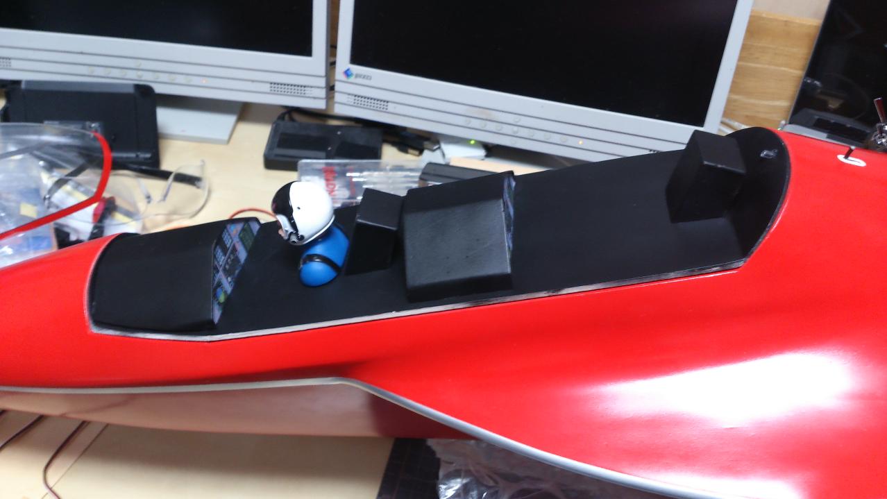 計器部はスチレンペーパで作成しています。各計器部とパイロットを接着して、