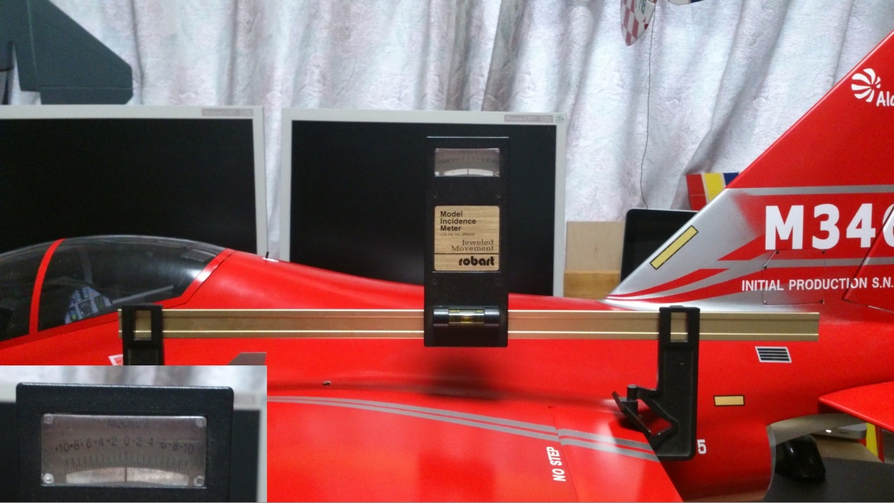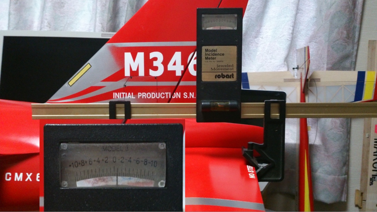 スタビライザの取り付け角度を確認しますが、まずは主翼を0(基準)にします。