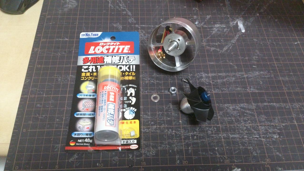 前のコーンを回して、静バランスが良いところ(どの位置でもロータが止まる)を探しましたが、結局なく、バランスを取る為の重りをロータの内側に貼り付けることになりました。