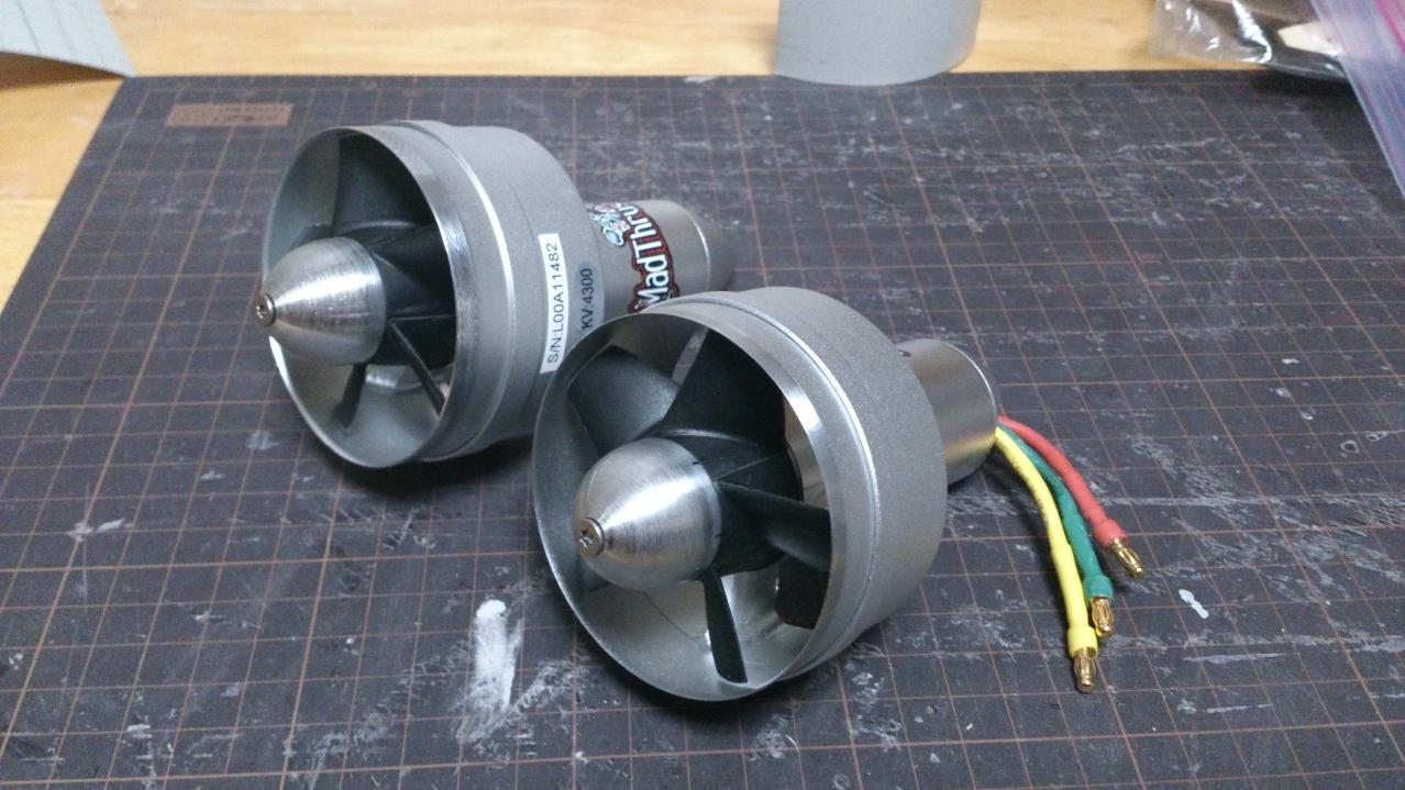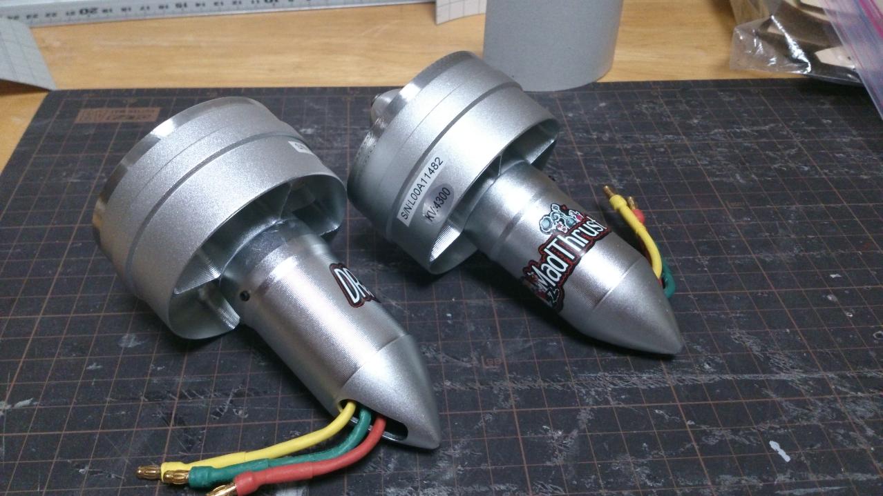 今回使用するパワープラントですが、ダクトユニットは、Hobbyking 64mm Alloy EDF 4300kv - 750w (4s)です。インナーモータで、重さが182g(1ユニット)です。製品にはインテークリング部がありますが、カットしてもらっています。