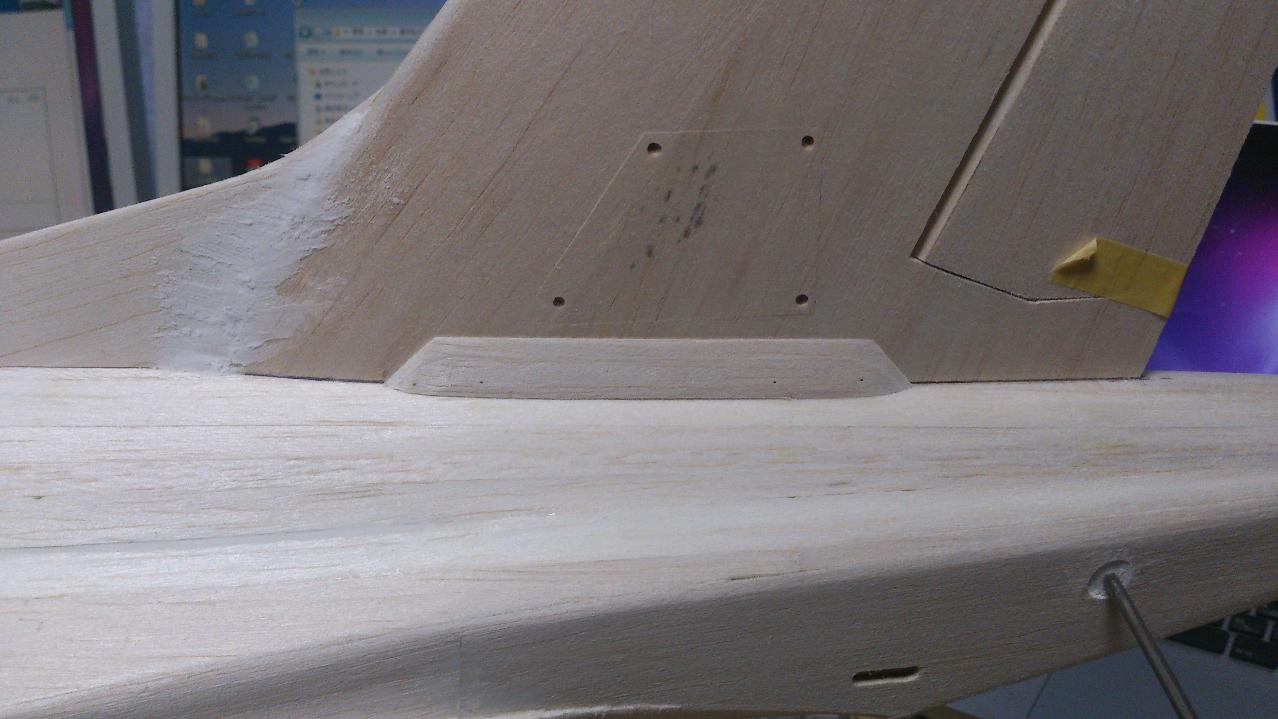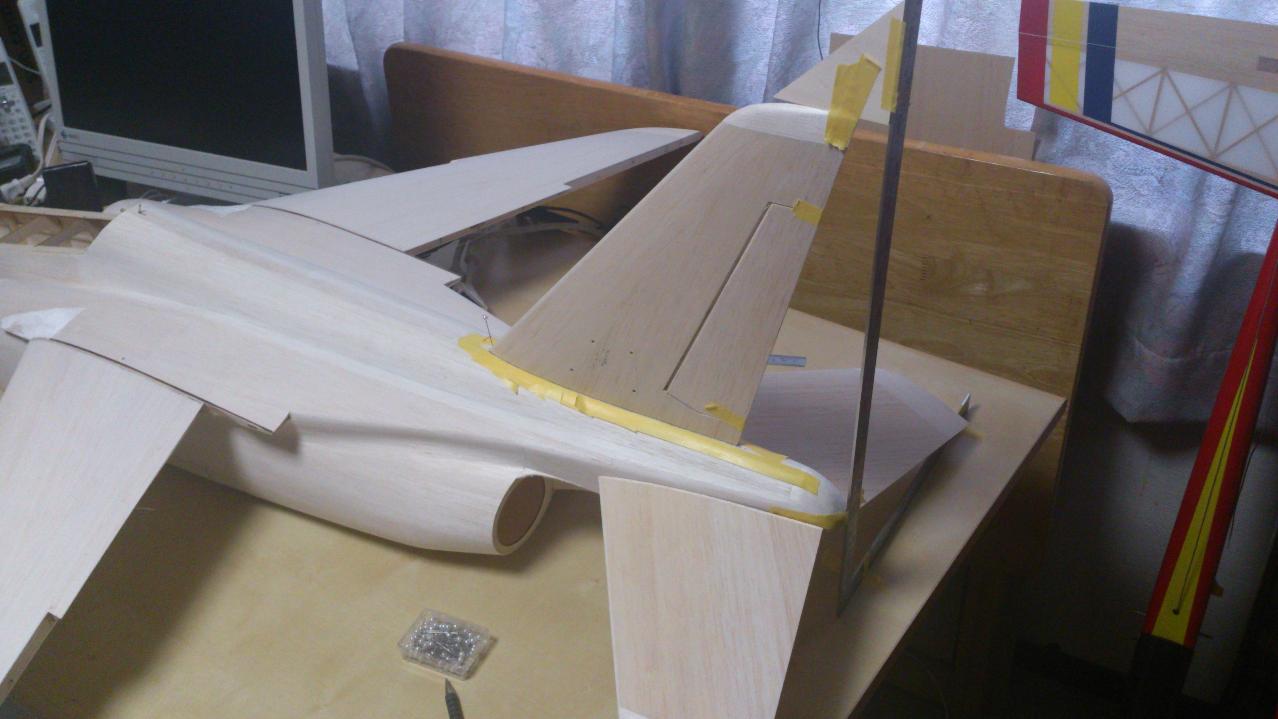 生地完の状態で垂直を尾翼を接着しました。