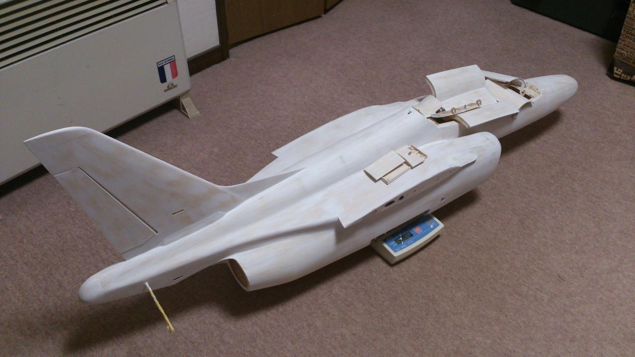 今回は初めてマイクログラスで下地処理をしました。写真はタルク入りサーフェーサ+サンディング(2回)をしてようやく下地が完了しました。(ここまでで,塗装だけで90g増)