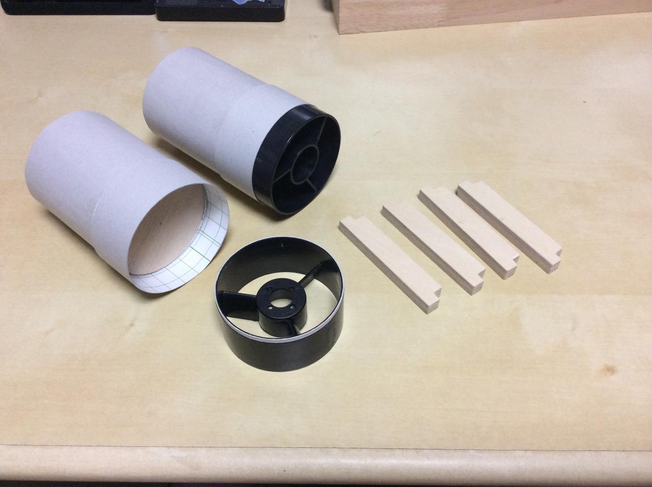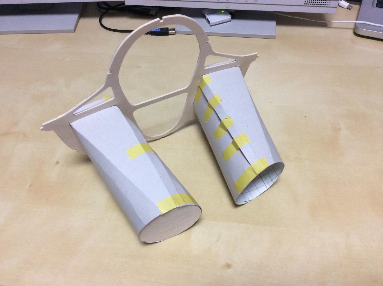 0.5mm厚の工作用紙を使って吸気ダクトを作成します。綺麗に丸くするためにダクトユニット同じ径のジグを作成します。
